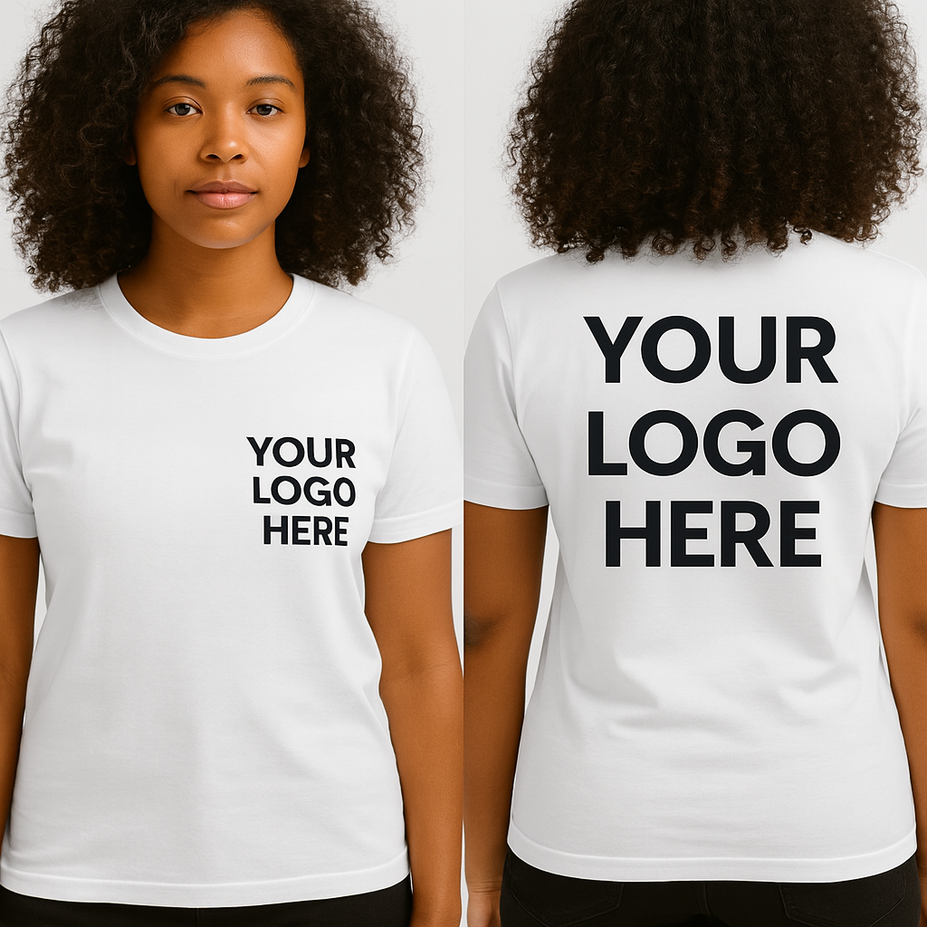 This Business Logo T-shirt showcases your company’s logo on both the left chest and the back, maximizing brand exposure in a subtle yet effective manner. Designed with quality materials, it offers a professional appearance while ensuring comfort throughout the day. Ideal for employees or promotional events, this tee creates a cohesive and polished look that reinforces your brand identity wherever it’s worn.