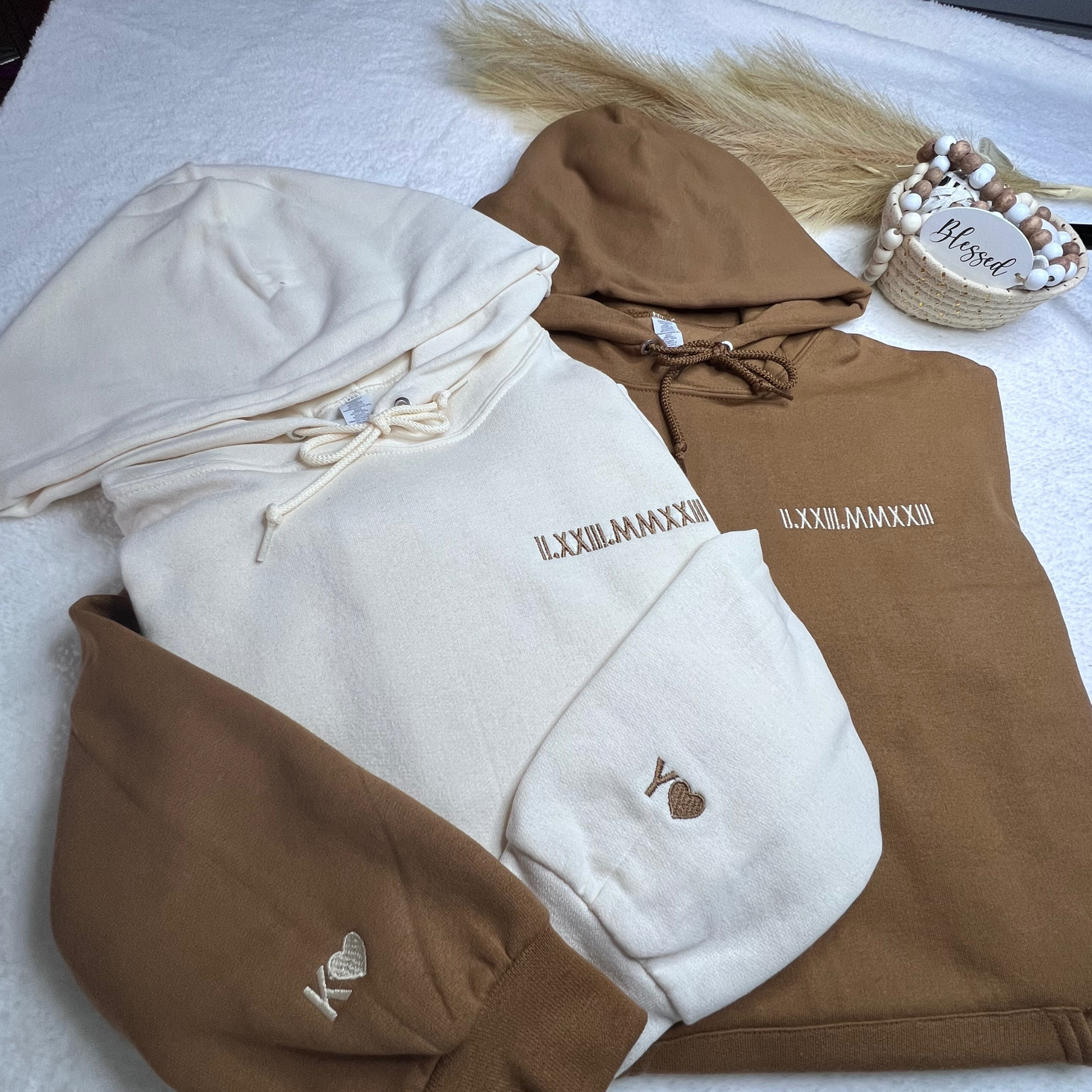 Celebrate your love and unity with our exclusive Couples' Anniversary Hoodie Set, a perfect blend of comfort, style, and sentimentality. Crafted from the softest, premium-quality fabric, these hoodies are designed to keep you cozy and stylish through all seasons. What makes this set truly unique is the personal touch of your anniversary date, elegantly embroidered in Roman numerals on the chest, symbolizing the timeless nature of your bond. To add an even more personal touch, each hoodie features the initial of your significant other on the sleeve, embroidered with precision and care.
