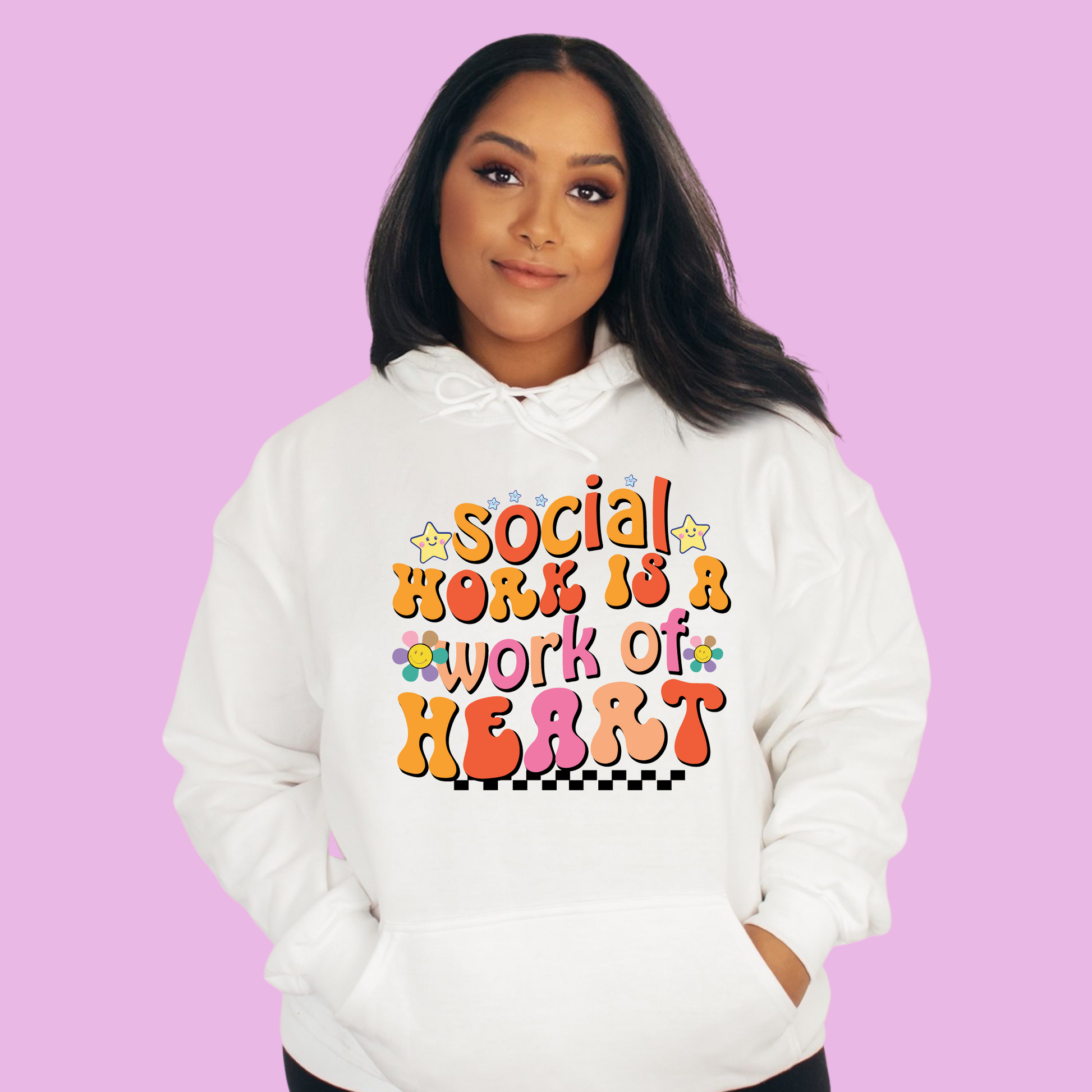Social Work Is a Work of Heart Tee, Crewneck and Hoodie