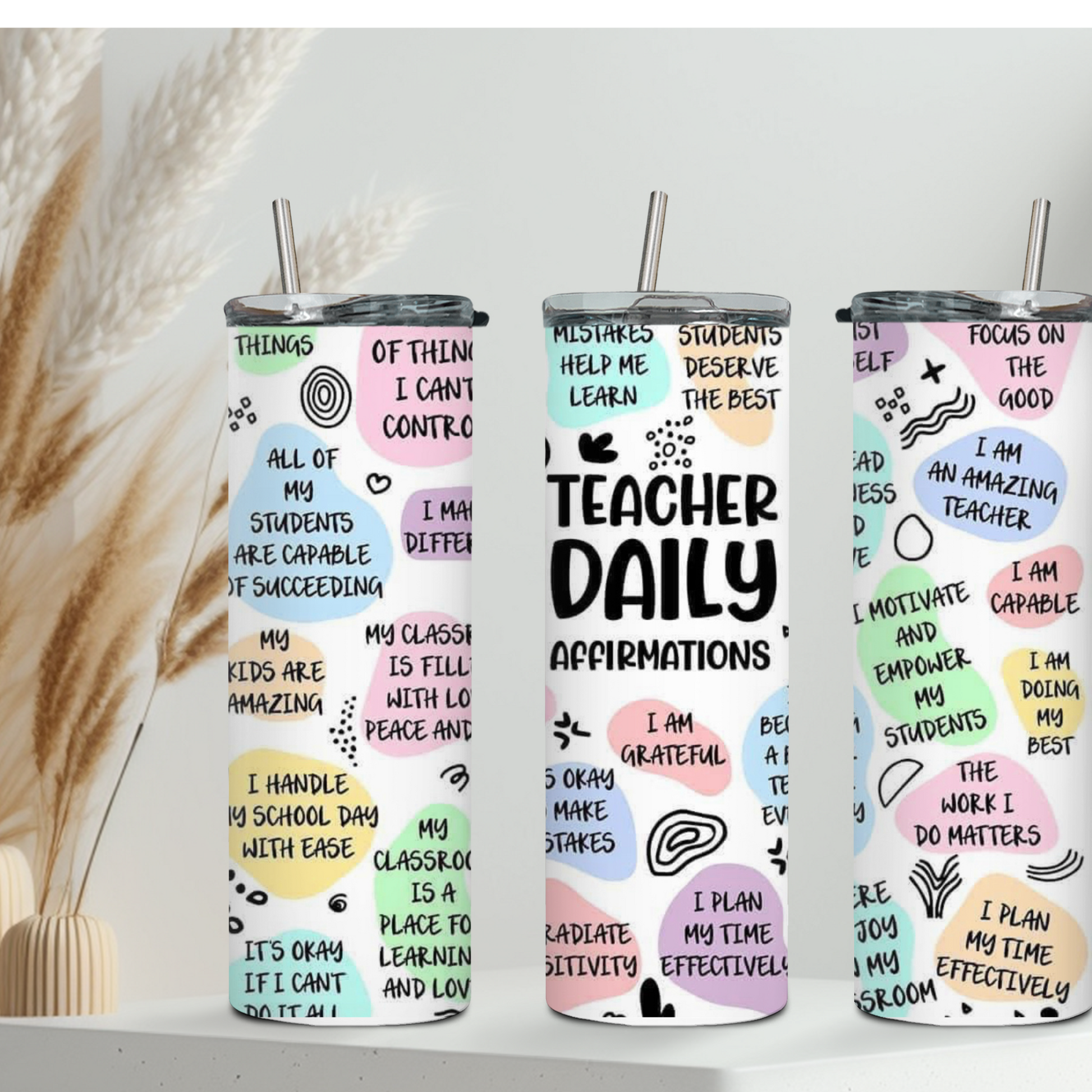 Teacher Daily Affirmations Tumbler - Positive Affirmations Tumbler For Teachers - Gift For Favorite Teacher - Teacher Appreciation Gift